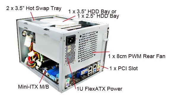 GA6902 - 2 Bays Hot Swap Mini Server ITX Case