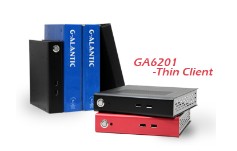 GA6201 is very thin and small in size with a dimensions only of 200 x 185 x 40mm (length, width, height respectively),but good enough to fit two USB ports for external connections in the front panel, also available with one Com Port at the front bezel. There are WiFi holes for setting up WLan Antenna of wireless connectivity. Thin Client GA6201 offers a variety of colors for front panel and mounting options; Wall Mount,VESA Mount and stand holder.